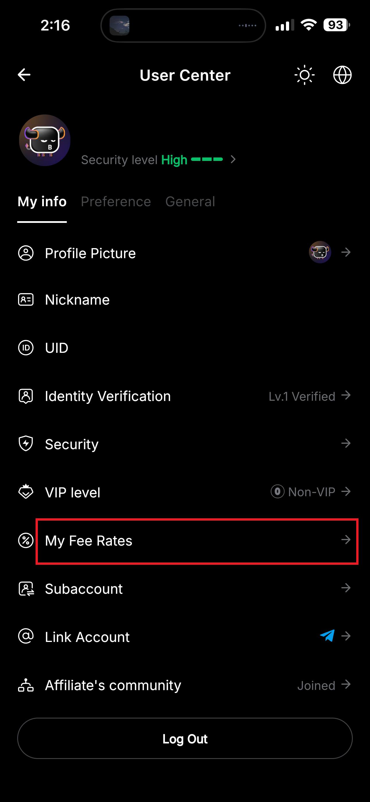 1. 프로필 -> My Fee Rates으로 들어갑니다.