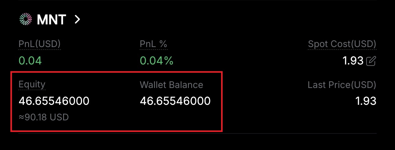 4. Asset 에서 보유중인 MNT 코인 확인.