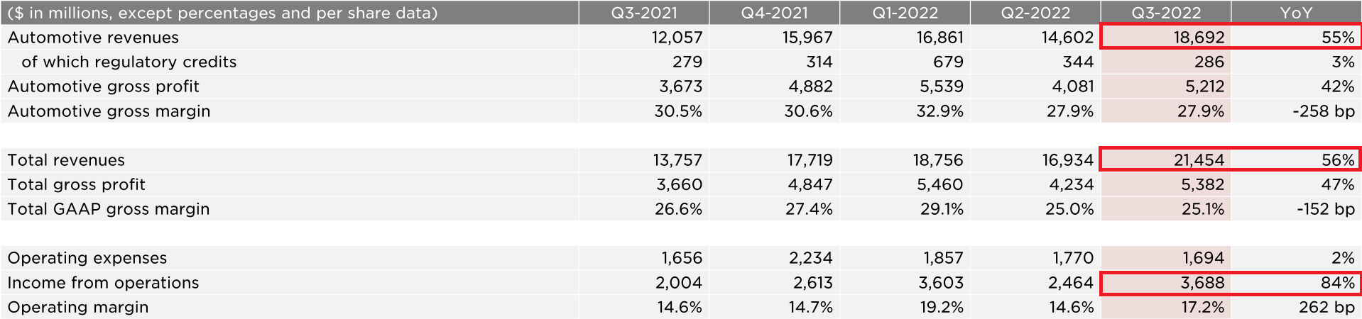 2022년 3분기 테슬라 매출액과 영업이익