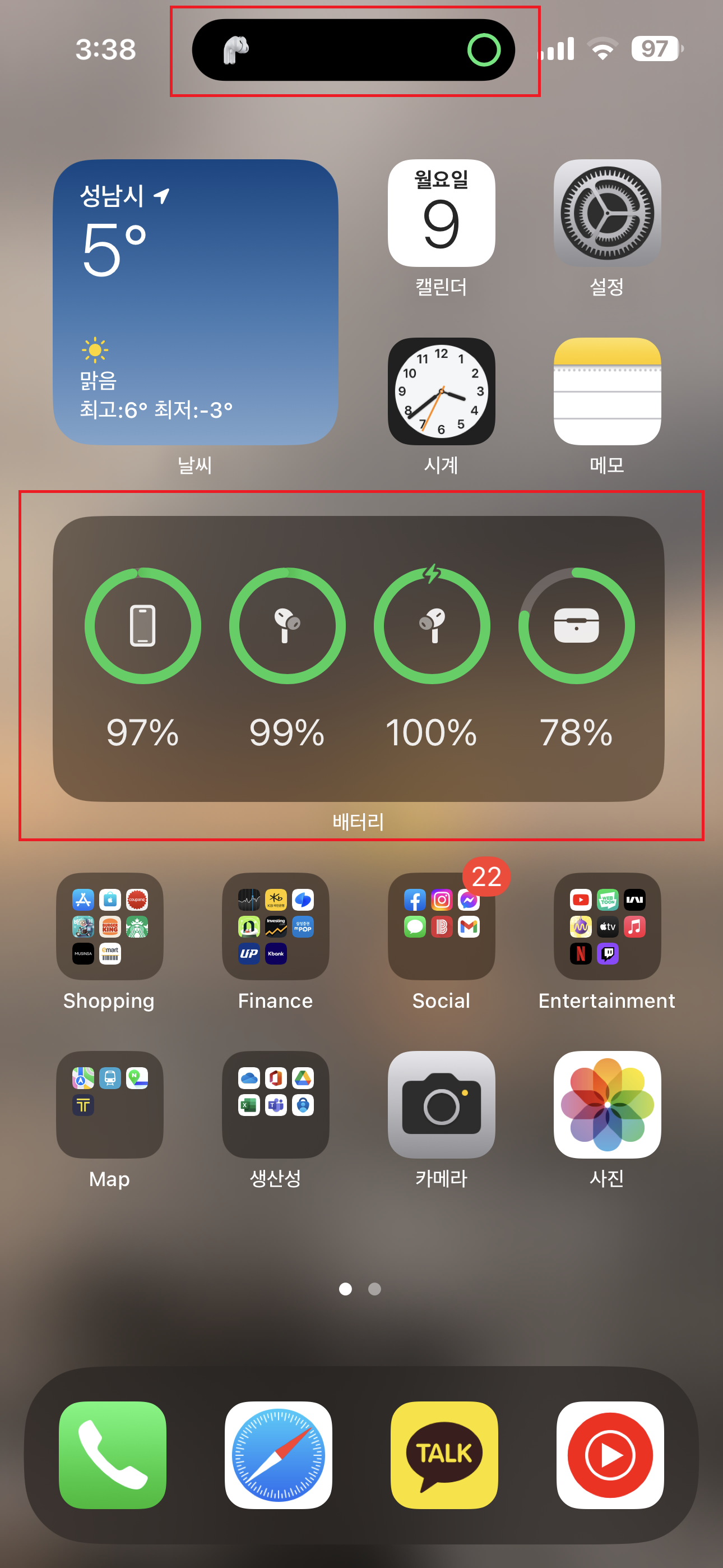 제가 마음에 들었던 점은 에어팟 프로 2세대와 아이폰의 상호작용이었습니다. 1) 아이폰 14 프로에서 새로 생긴 다이나믹 아일랜드와의 연동 2) 위젯에 에어팟 배터리 상태 연동. 에어팟의 연결 상태를 다이나믹 아일랜드를 통해 보여주고, 배터리 상태를 위젯에 실시간으로 띄워 줍니다. 대단한 것도 아니고 정말 사소하지만, 저는 이렇게 사소한 디테일이 에어팟을 유저 친화적으로 만들어 준다고 느꼈습니다.