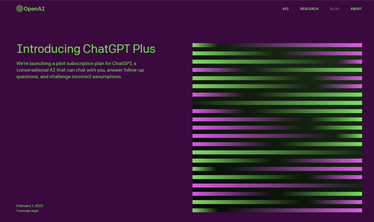 2023년 2월 1일 ChatGPT를 만든 OpenAI의 블로그에 ChatGPT 유료화 관련 글이 올라왔습니다. 밑에 링크를 통해 직접 확인하실 수 있습니다.