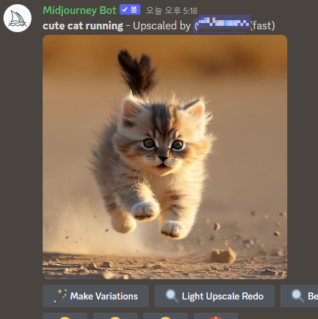 생성된 이미지에 몇 가지 변화를 줄 수 있다. 생성된 이미지 밑에 U1, U2, U3, U4, V1, V2 등의 버튼들을 활용해 주면 된다.