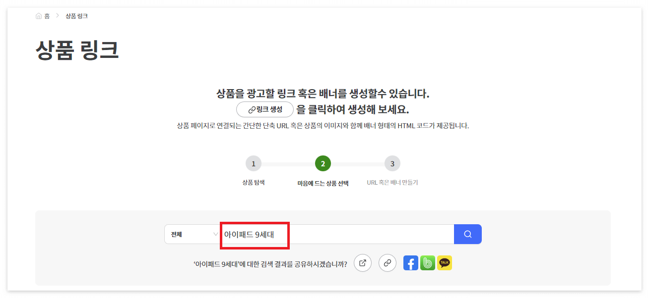- 광고하고 싶은 상품을 검색해줍니다. (예시: 아이패드 9세대)